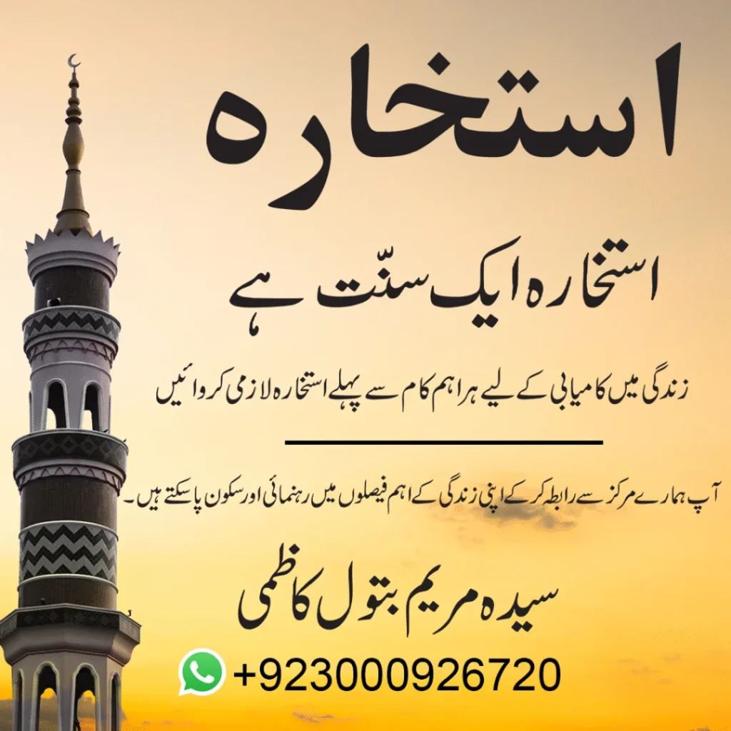 Get the best online Istikhara services in the UK by Lady Scholar Syeda Maryam Batool, a trusted name for rohani guidance and support. If you are facing problems in marriage, love marriage, divorce, or relationships, you can get proper help through Istikhara. Her guidance helps you find peace, clarity, and the right path in life decisions. No matter where you are in the UK, you can easily contact her online for Istikhara and advice. With experience and sincerity, she helps people make better choices for a happy and successful life through the blessings of Istikhara.